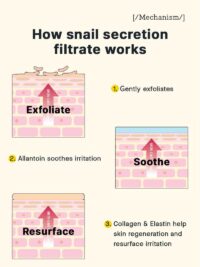 موسین یا مخاط حلزون میتواند تأثیرات مثبت بسیاری بر روی پوست داشته باشد. این ماده قادر است تا تولید کلاژن و الاستین در پوست را افزایش دهد که باعث جوانسازی و تقویت پوست میشود. همچنین، موسین قادر است به کاهش آسیب رادیکالهای آزاد کمک کند و پوست را در برابر این آسیبها محافظت کند.