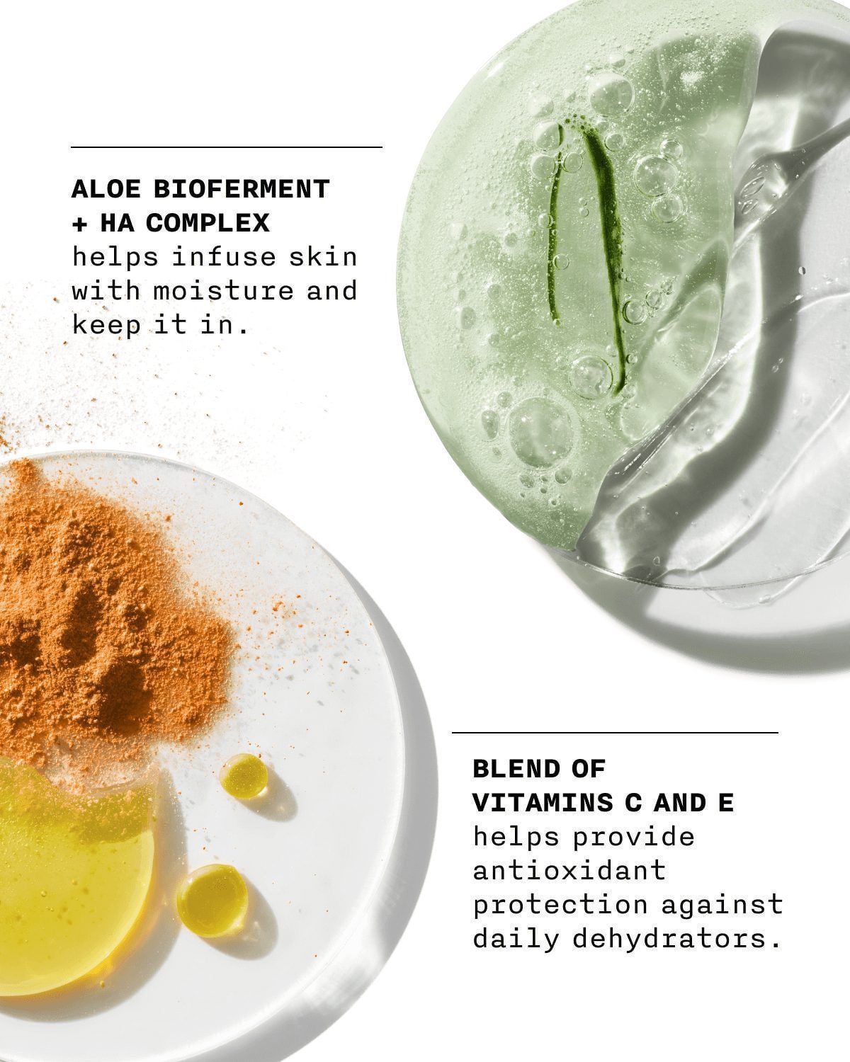 گیاه آلوئه ورا به عنوان یک مرطوب کننده طبیعی شناخته شده و استفاده از آن در صنعت زیبایی رایج است. متخصصین کلینیک با ترکیب عصاره و پودر این گیاه با هیالورونیک اسید توانسته اند آبرسانی عمیق به سلول های میان بافتی را ممکن کرده و به کمک کافئین، آن را تبدیل به یک ترکیب طراوت بخش کرده اند. علاوه بر این، ترکیبات این محصول با تحریک سلول های پوست، مکانیزم طبیعی آبرسانی پوست را تحریک کرده و آن را احیا می کنند. این محصول در برابر آلرژی و حساسیت های پوستی تست شده و هیچ مشکلی برای هیچ رده سنی به وجود نخواهد آورد.