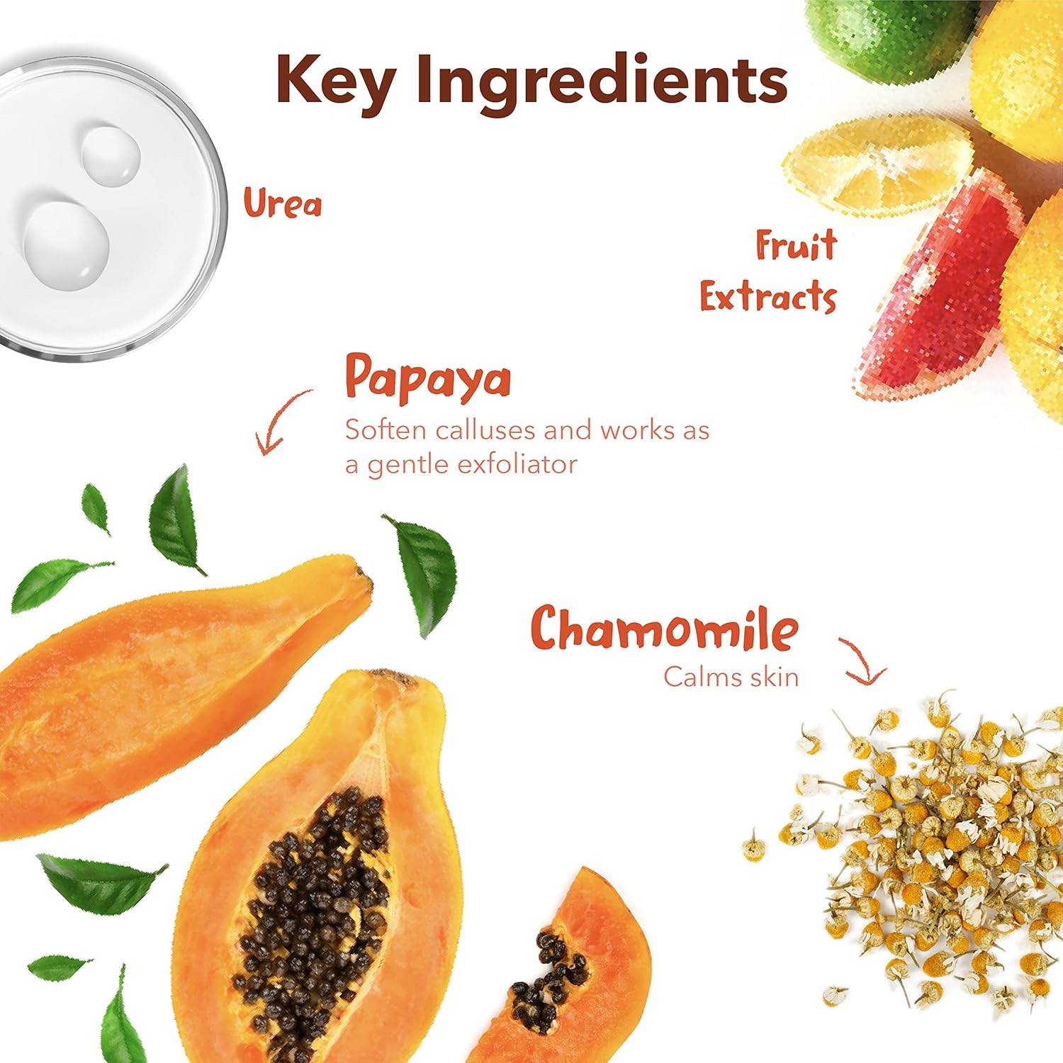 • حاوی اسیدهای میوه طبیعی (AHA): تسریع بازسازی سلولی و ایجاد نرمی، لطافت و طراوت پوست پا